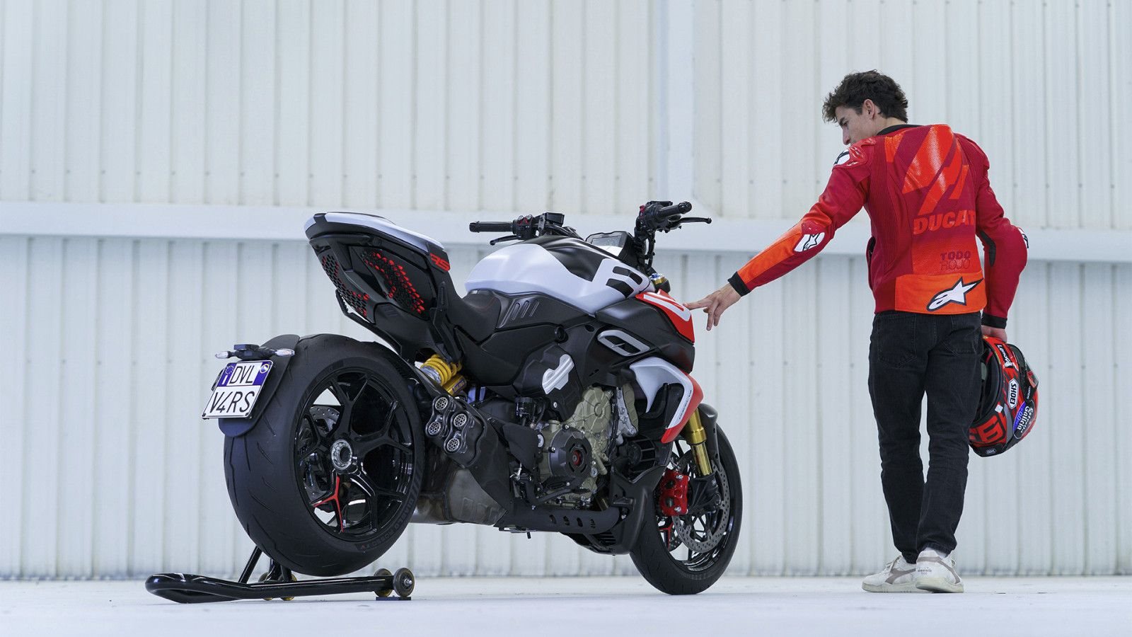 Serienausstattung Ducati Quick Shift (DQS) Up/Down 2.0, Öhlins Federung, Lithium-Ionen-Batterie, Schmiedefelgen aus Aluminium, Einzelsitzer-Konfiguration, Tempomat, Ducati Power Launch (DPL), Ducati Multimedia System (DMS), TFT-Farbdisplay, Hands-Free, LED-Beleuchtung, LED-Scheinwerfer, Daytime Running Light (DRL), dynamische Blinker, automatische Blinkerrückstellung, Lap Timer, Turn-by-Turn Navigation, USB-Steckdose, beleuchtete Bedieneinheit, Kotflügel vorn und hinten, seitliche Tankabdeckung, Cockpitverkleidung, Kupplungsabdeckung, Heckabdeckung und seitliche Luftansaugung aus Carbon